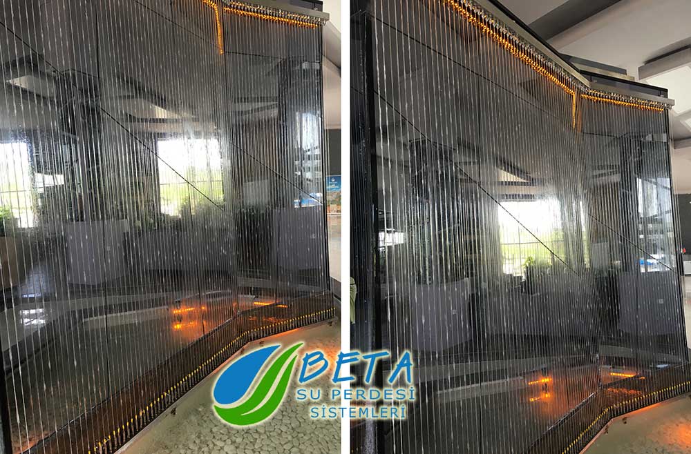 Taş Zeminli Su Duvarı, Su PerdesiCam Zeminli Su Perdesi
